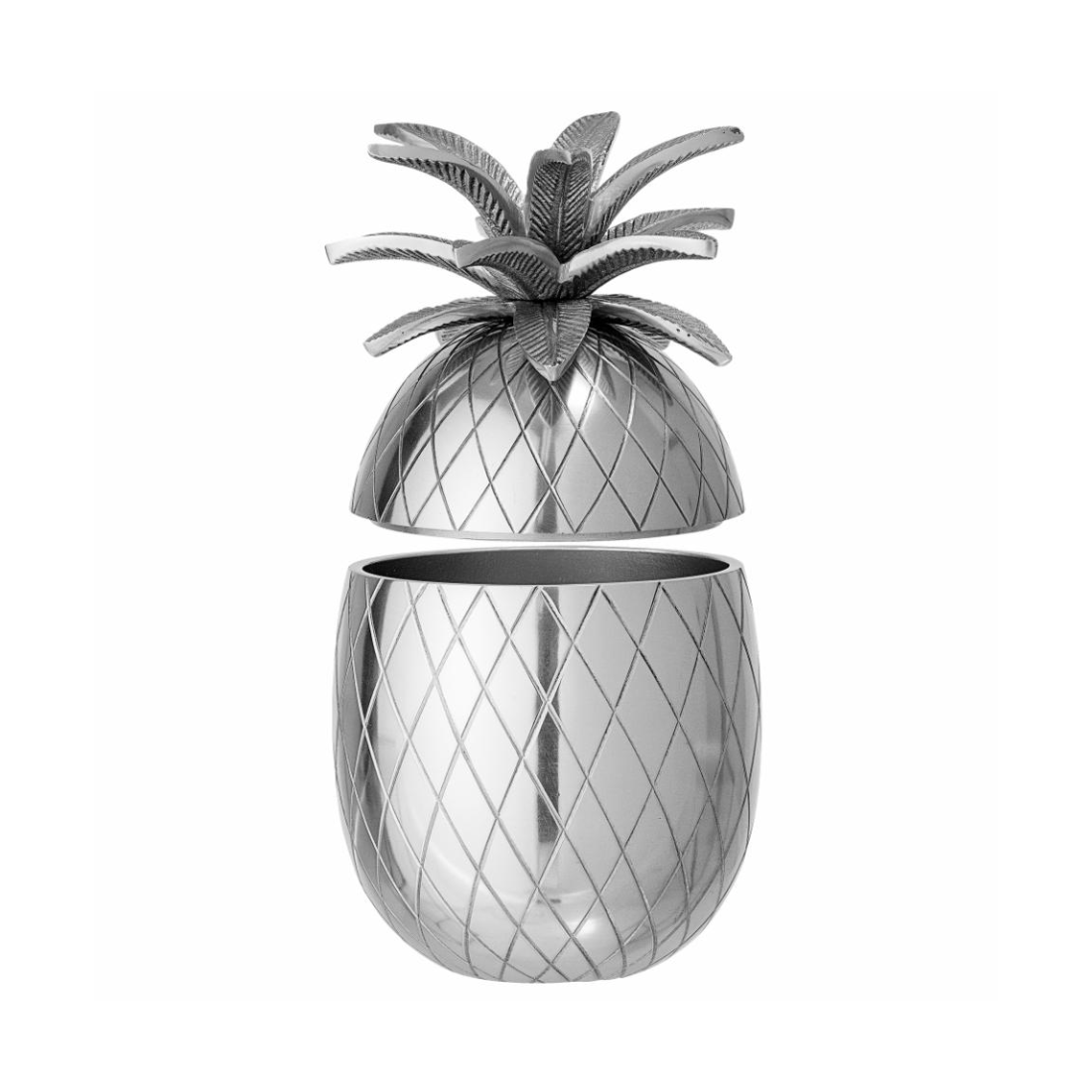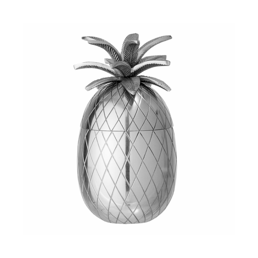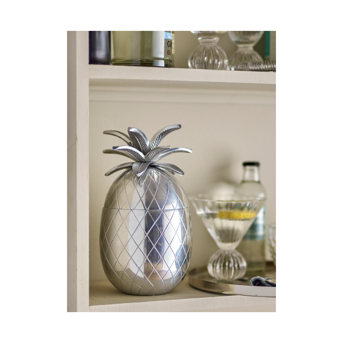 Le seau à glace Yuichi de Bloomingville est fabriqué en aluminium et a la forme d'un ananas avec une élégante finition argentée.
