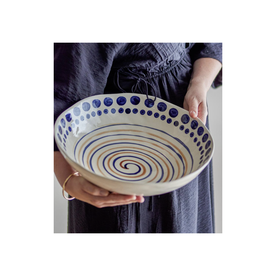 Le Bol Shama de Bloomingville est un ajout unique et magnifique à votre table. Avec sa couleur bleu foncé peinte à la main et son motif aux nuances claires, il crée une expression artistique et élégante.