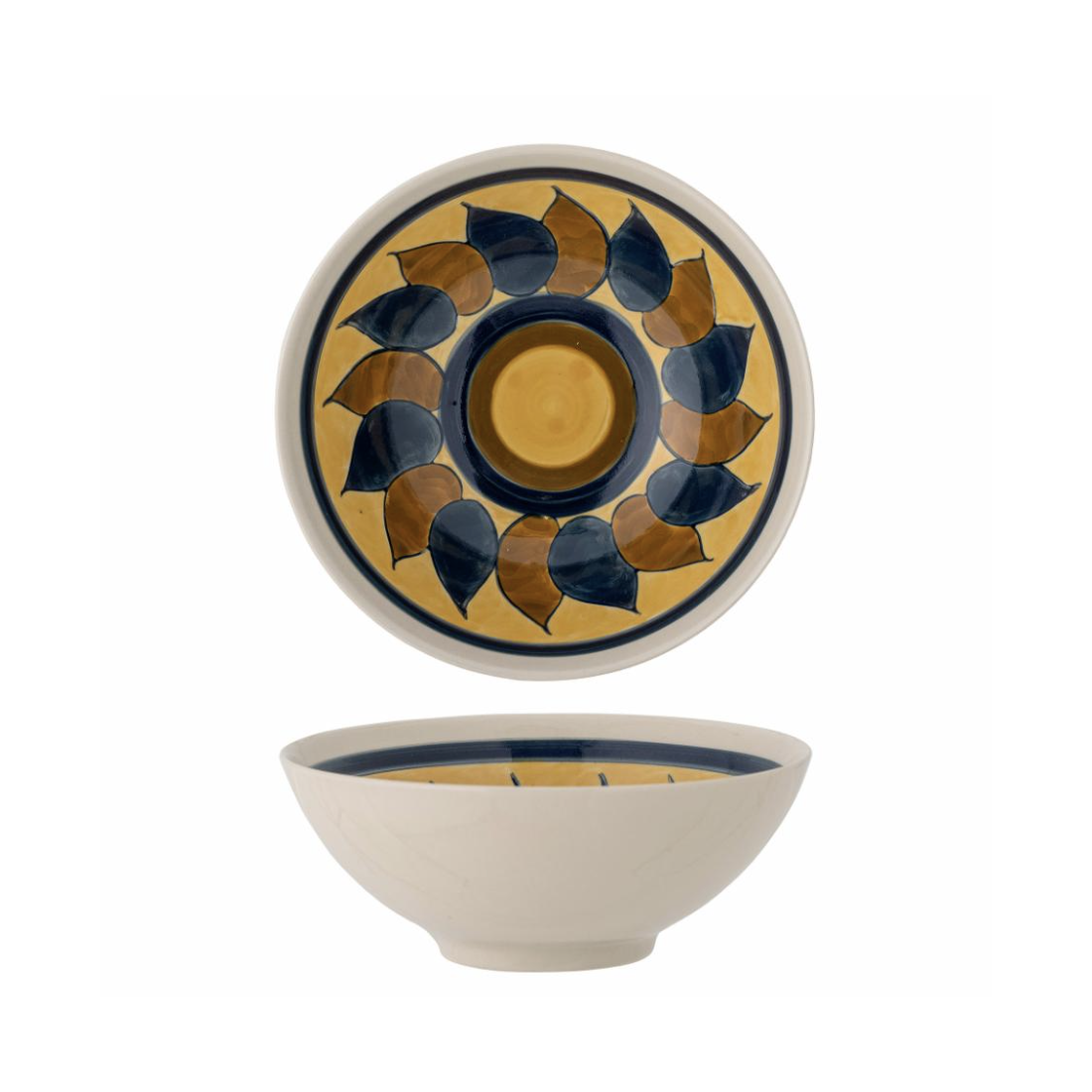 Le bol est en grès et convient parfaitement pour servir des salades. Le bol variera en couleurs et motifs en raison de sa structure peinte à la main.