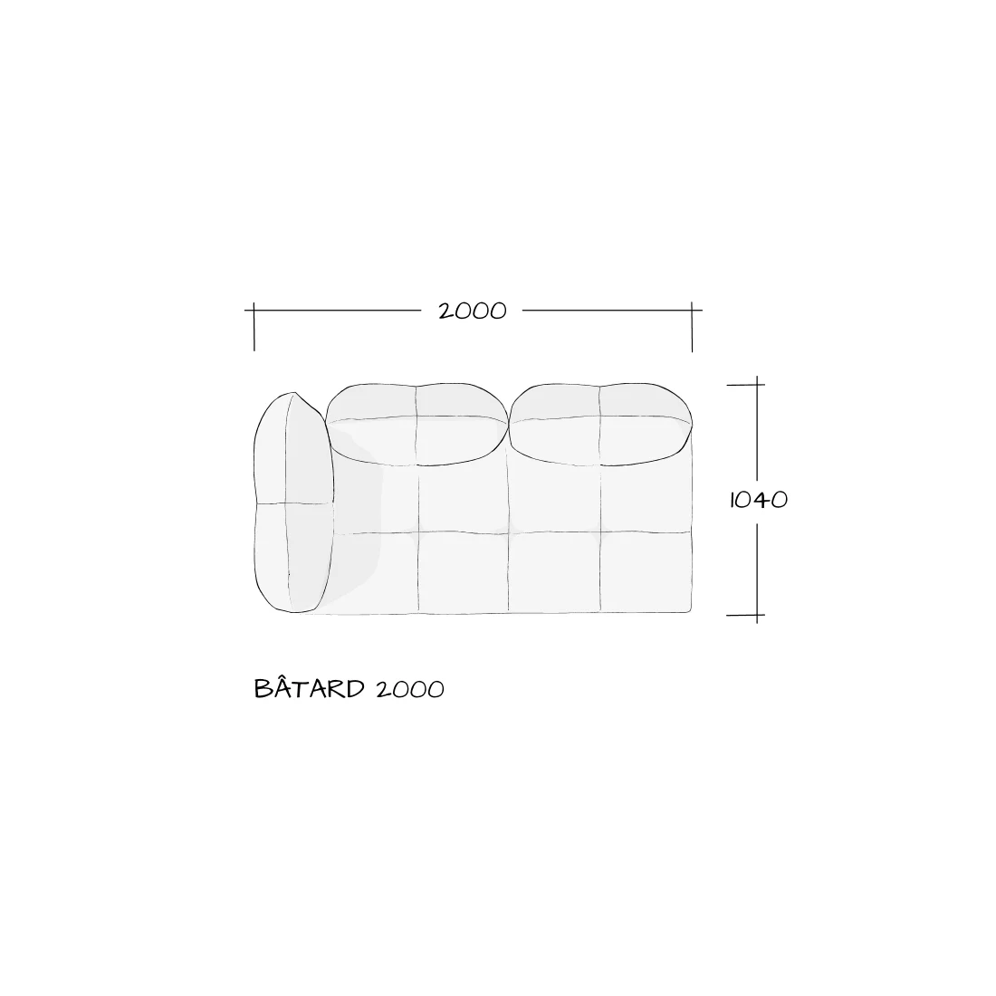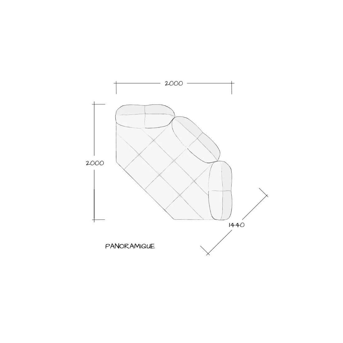 Ce canapé se compose de 2 pièces : un panoramique et un bâtard pour une longueur de 4m, pour accueillir aisément 5-6 personnes.