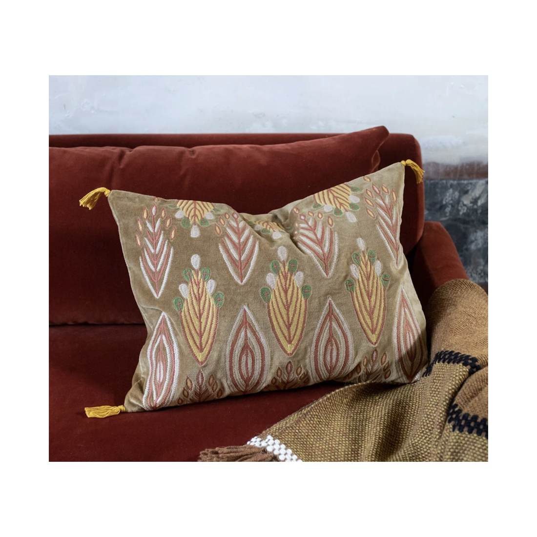 Comme une invitation à s’enfoncer dans un océan de confort, les housses de coussin Patta sont vêtues de velours, doux et accueillant.