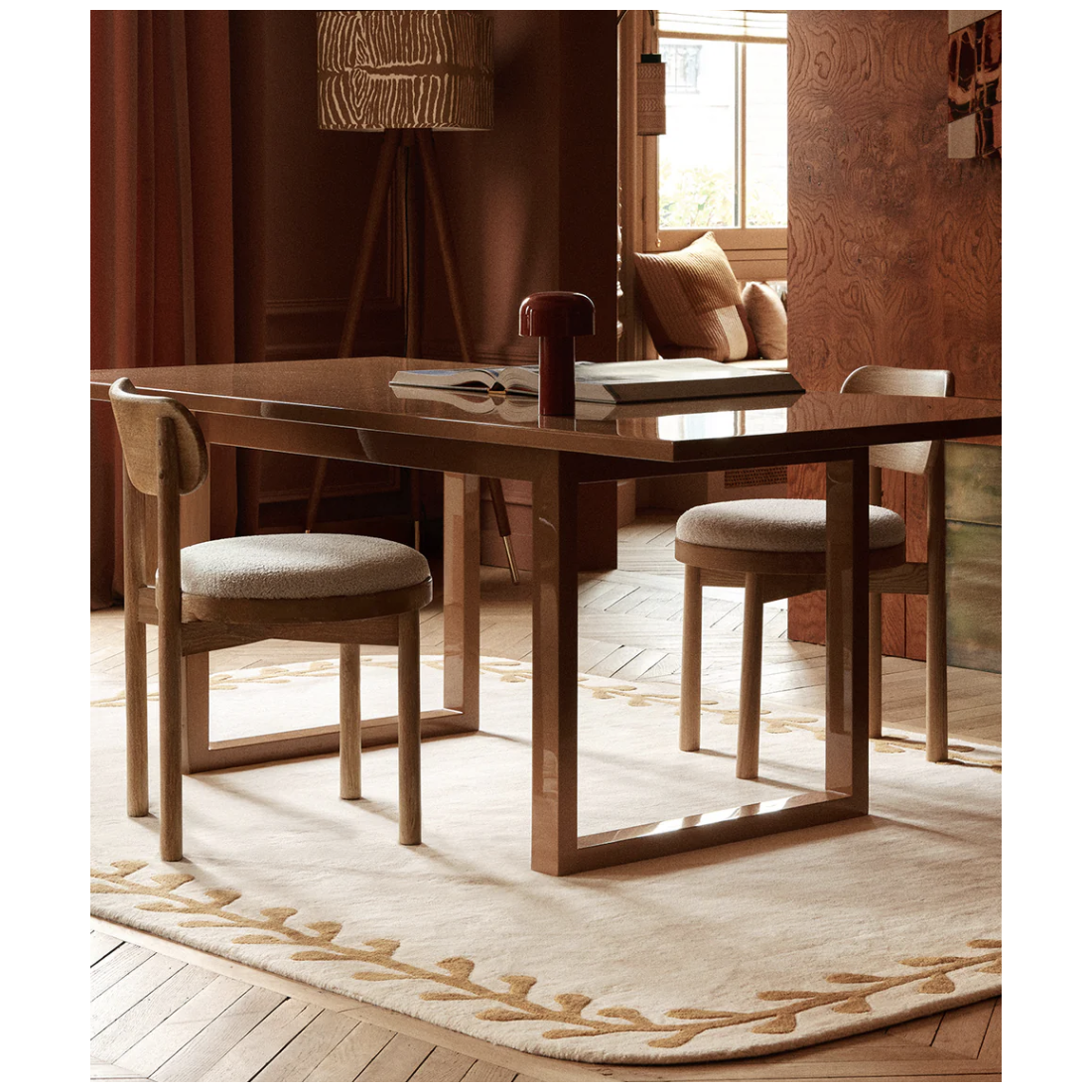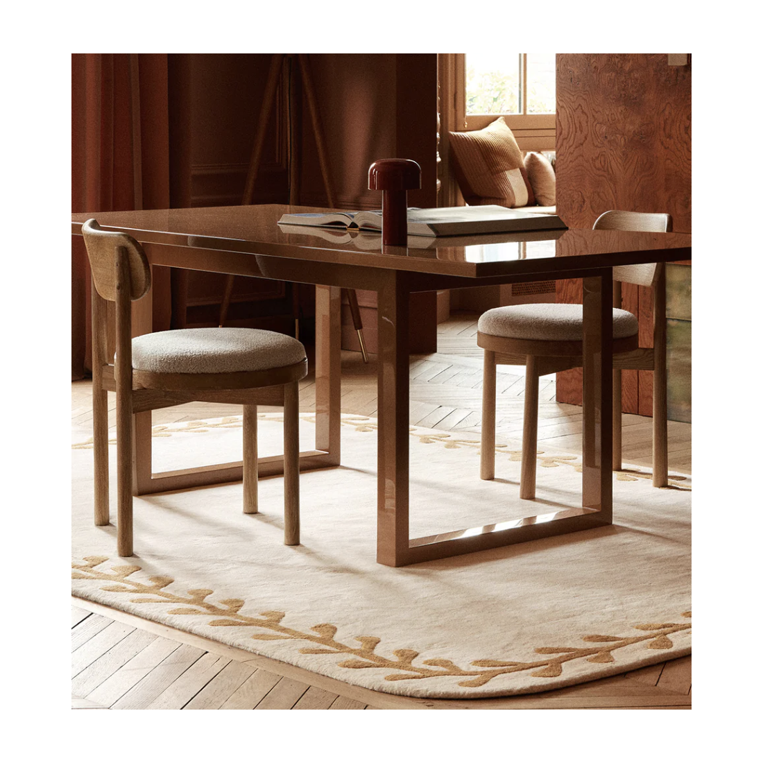 Proposé en deux formes ; rectangle aux angles adoucis ou forme libre, Kalamata affirme une douceur graphique et un caractère narratif subtil, entre ornement et simplicité.