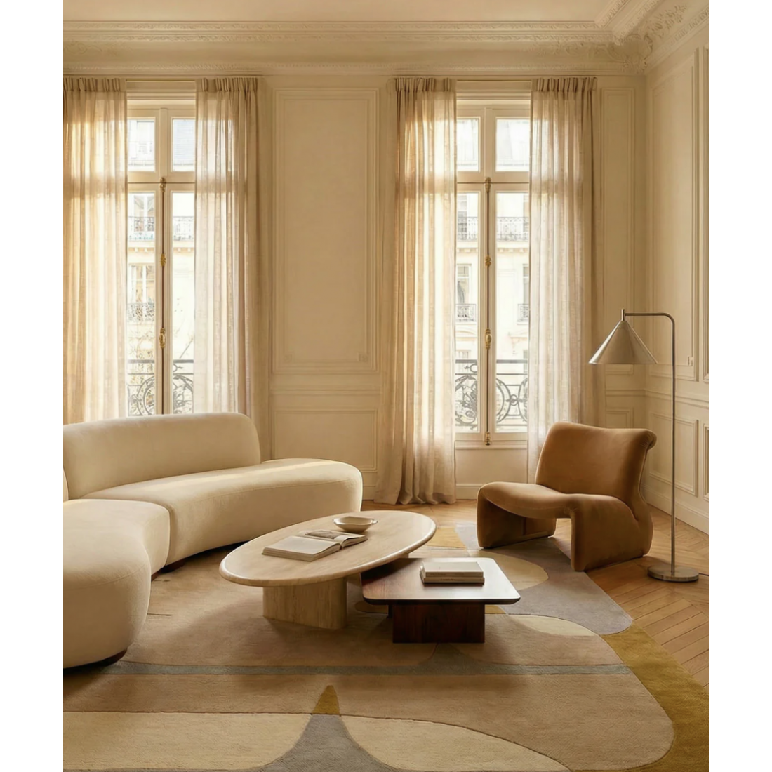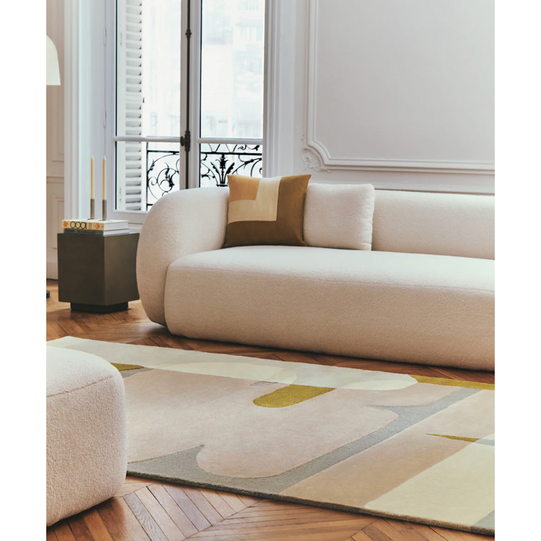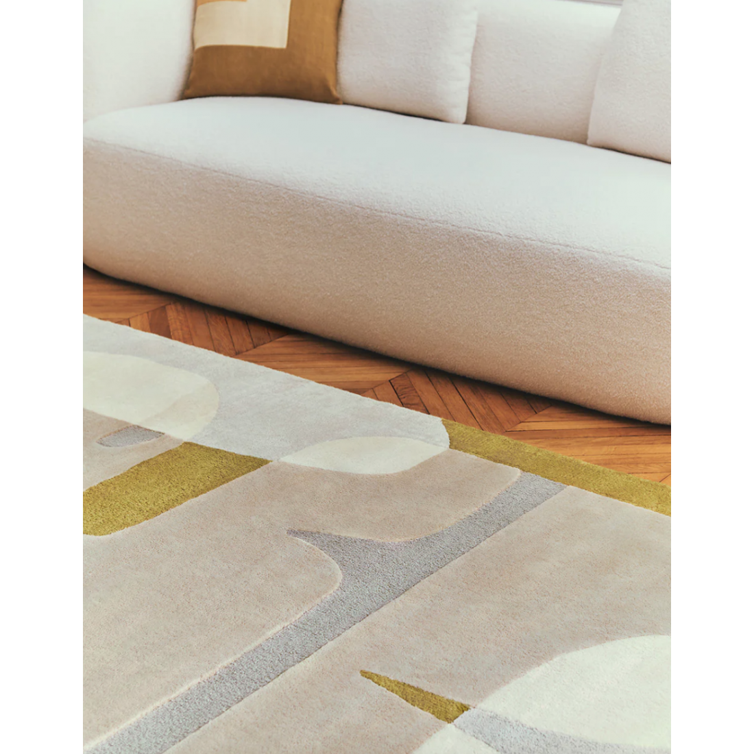 Le tapis ocre Sirocco, création de Dorothée Delaye pour Toulemonde Bochart, capture l'essence même de la lumière méditerranéenne.