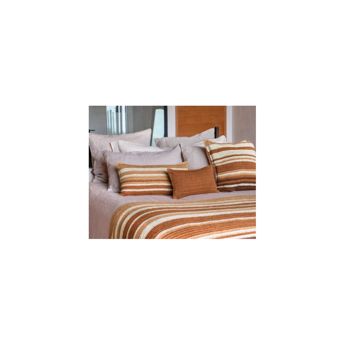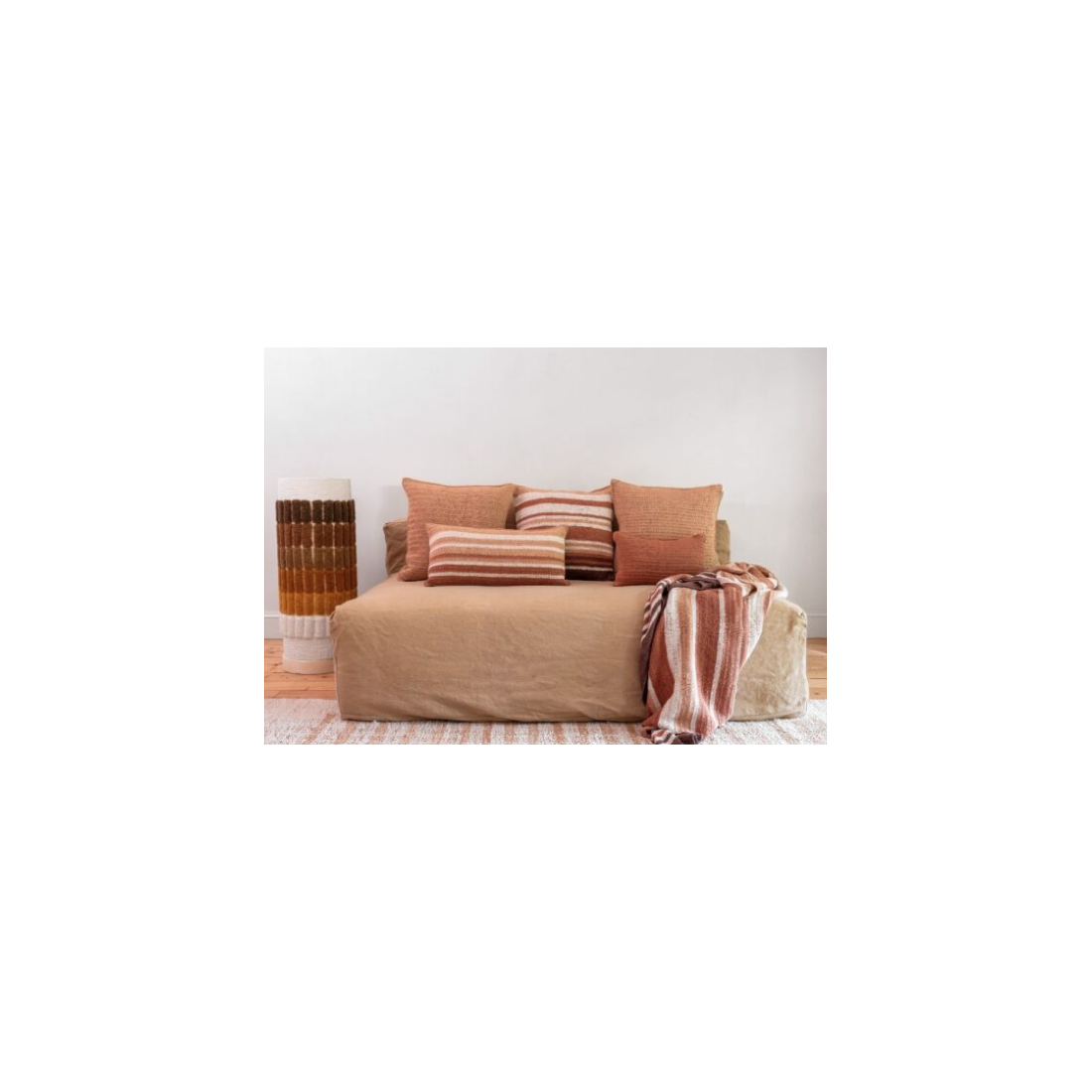 TIERRA DEL SOL est une collection en coton crocheté à la main. Chaque coussin est unique, marqué par son geste artisanal.