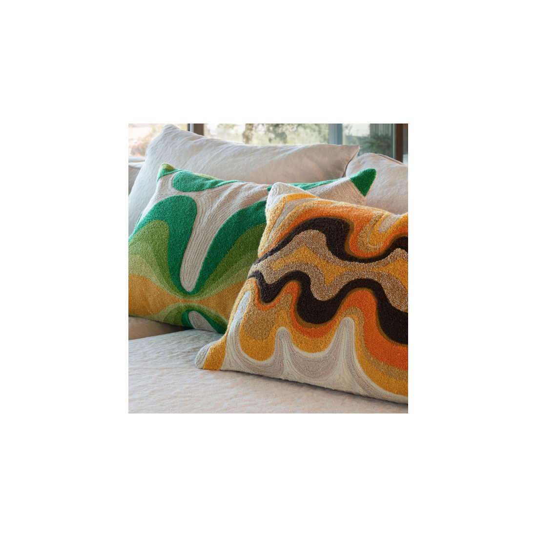 Apportez une touche d’élégance artisanale à votre intérieur avec le coussin COSMO en coloris Cardamome.
