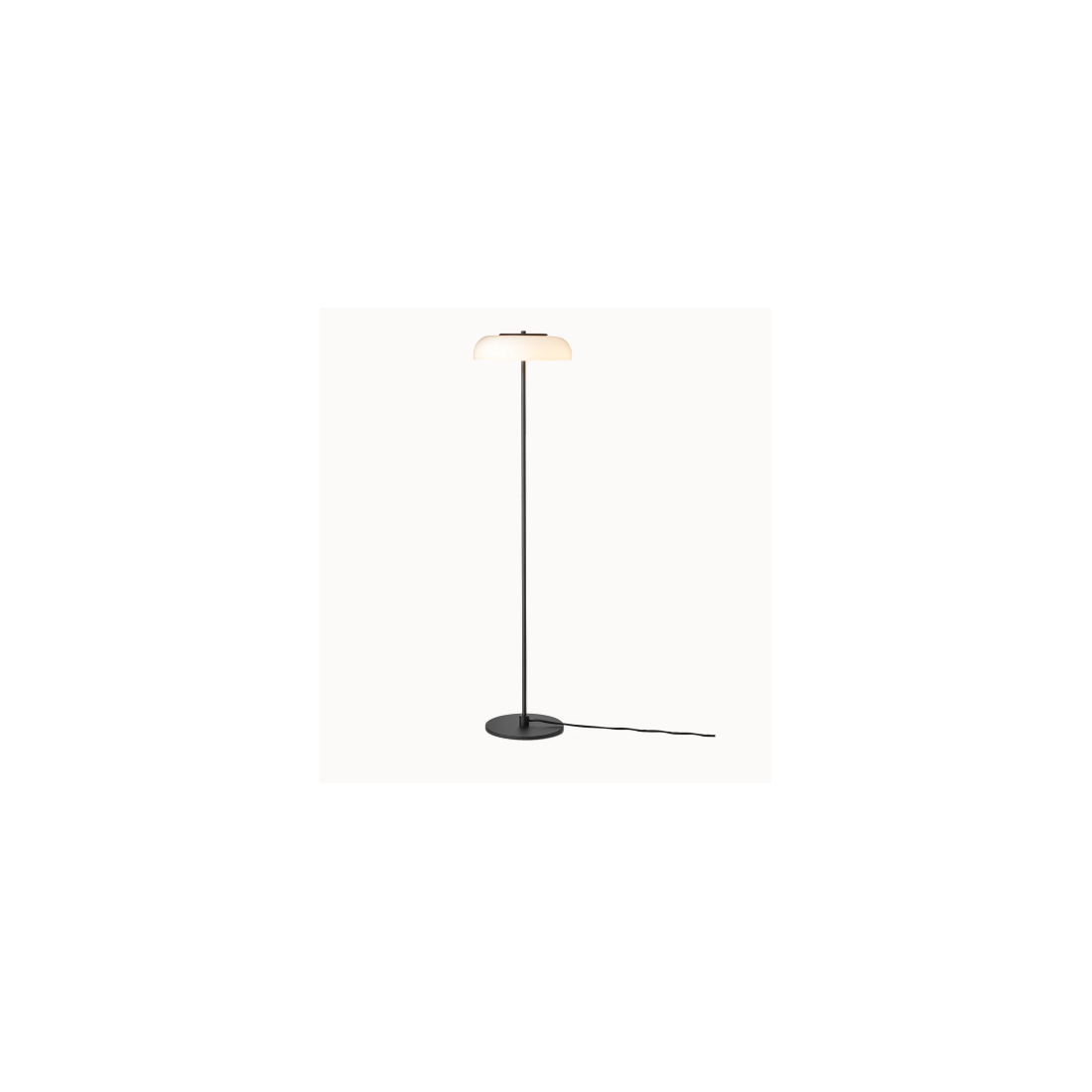 Le lampadaire Blossi Floor se distingue par sa structure élégante en métal noir et son abat-jour en verre opale.