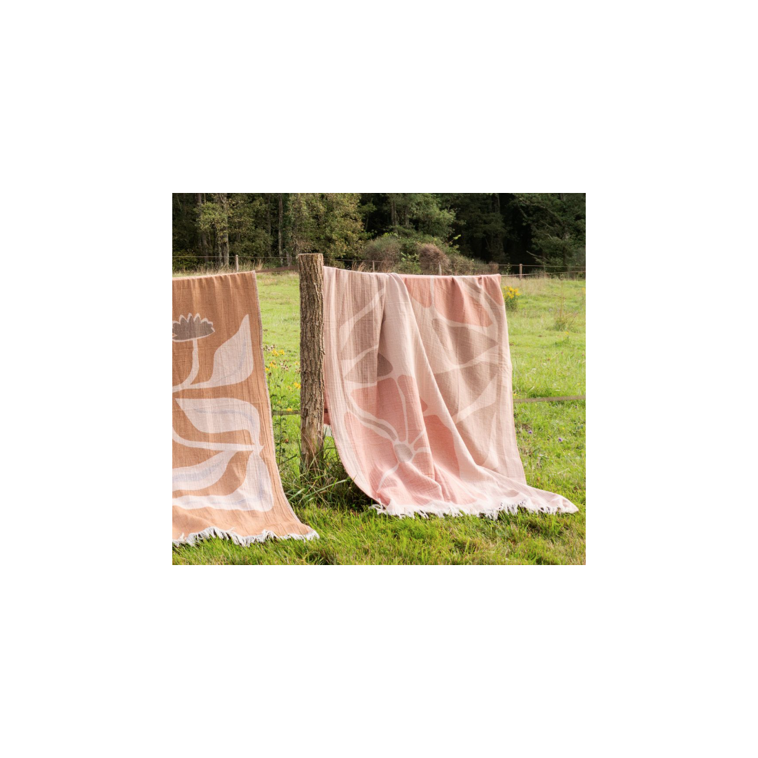 La fouta TEXAS, confectionnée en 100% coton recyclé, incarne une douce ambiance estivale par son motif fleuris unique.