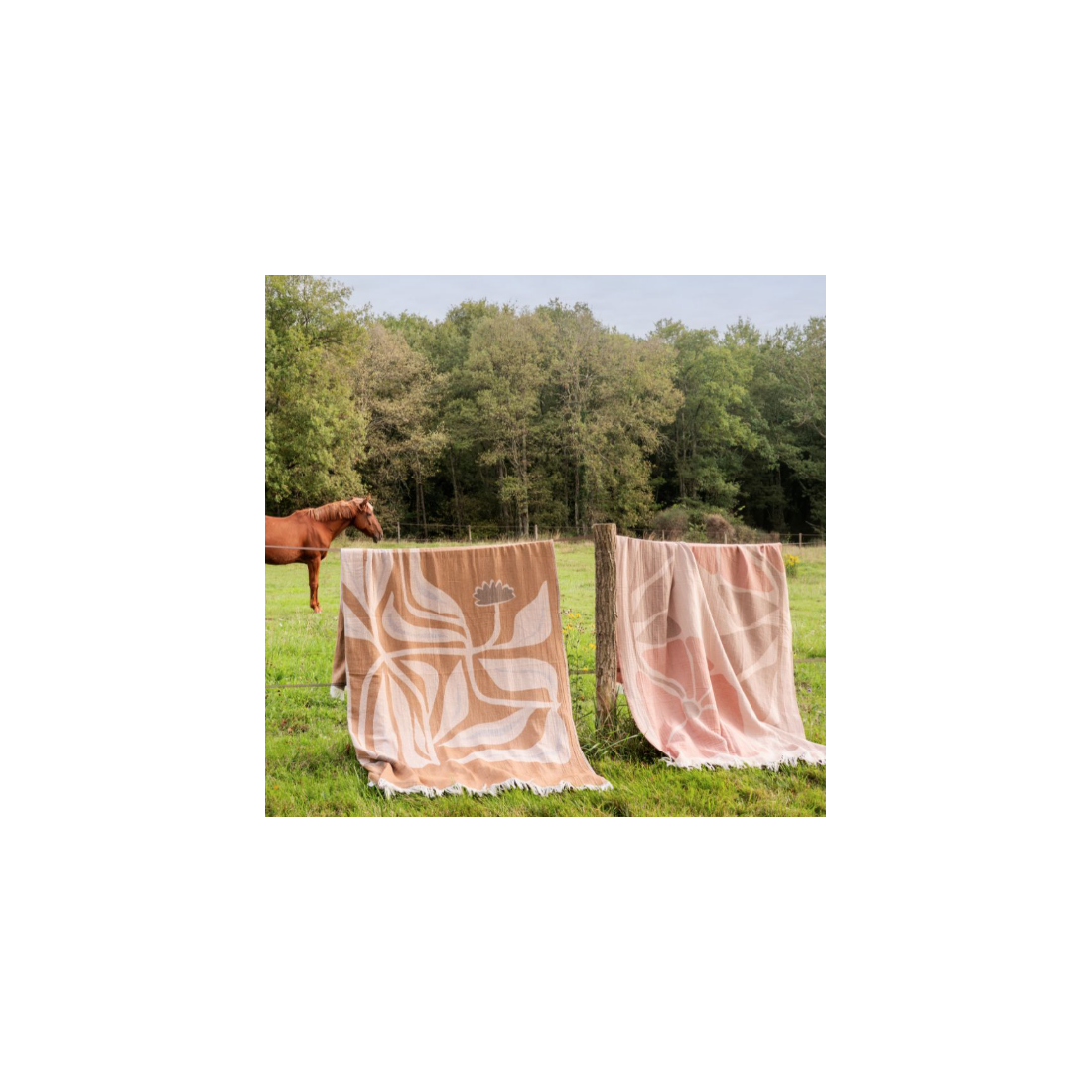 La fouta TEXAS, confectionnée en 100% coton recyclé, incarne une douce ambiance estivale par son motif fleuris unique.