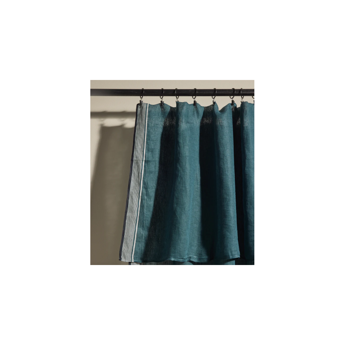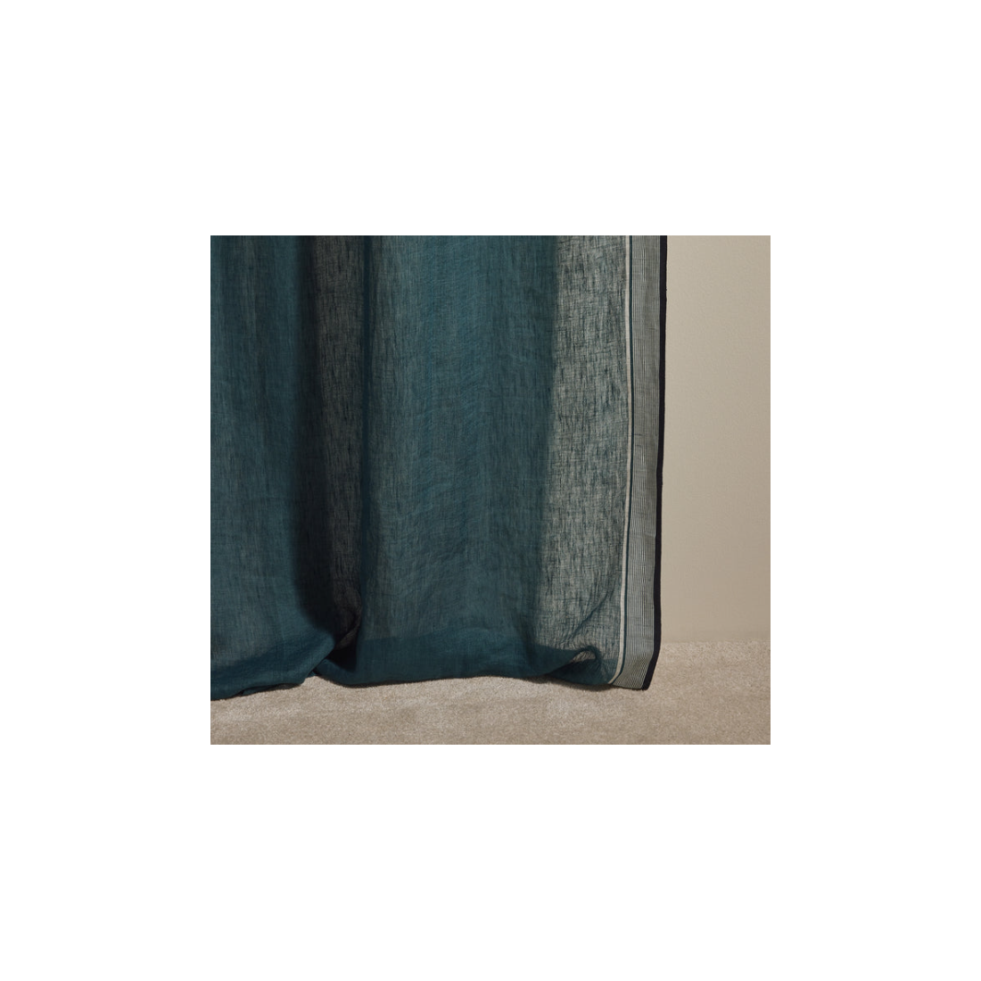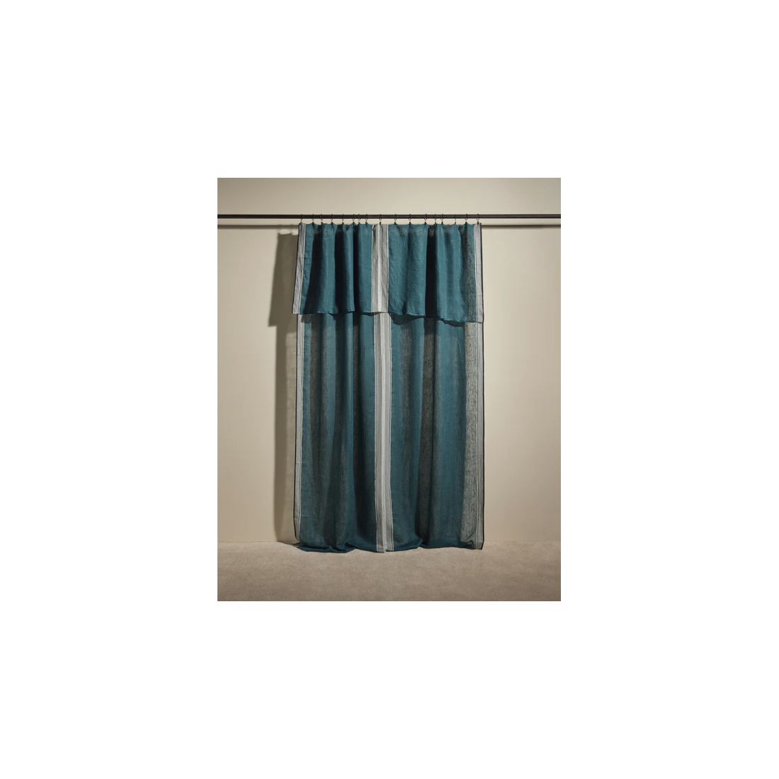 Un seul voilage suffit à couvrir deux fenêtres, ce qui lui permet de révéler d'élégantes rayures au centre et en bordure.