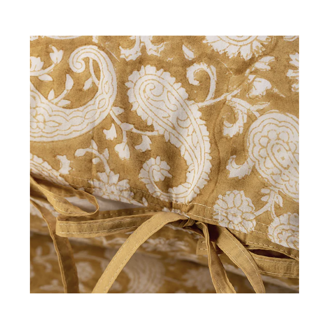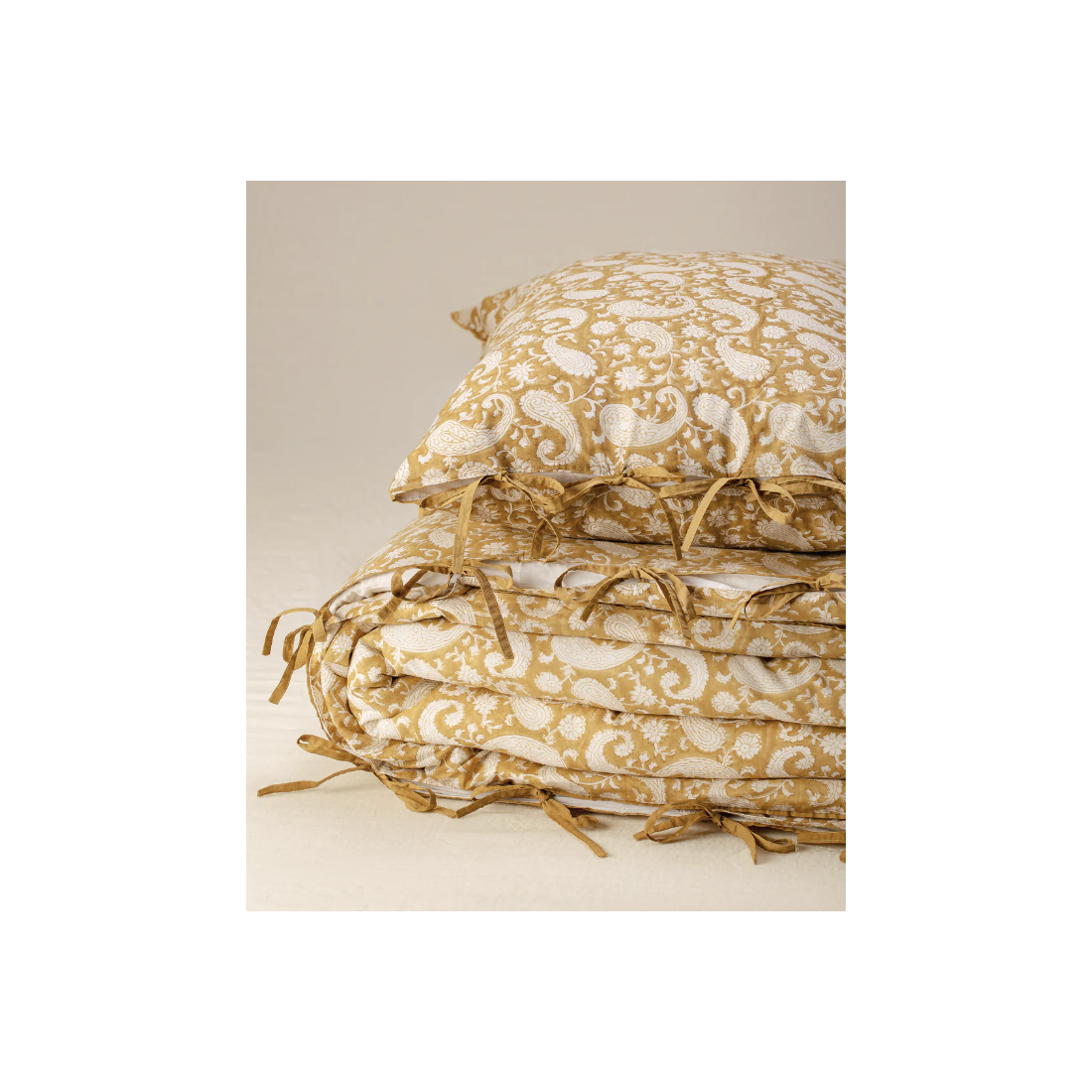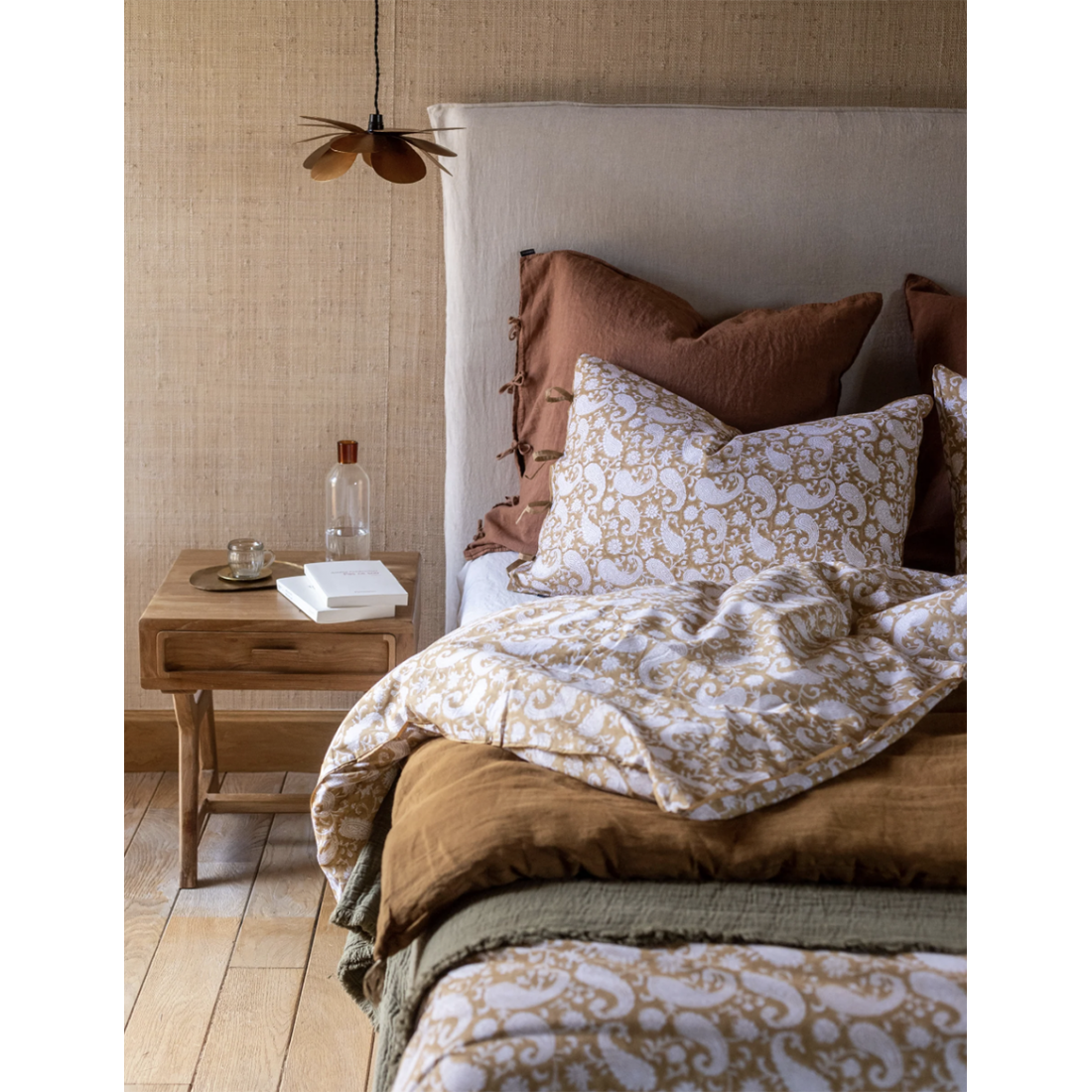 Le motif cachemire, symbole intemporel de vie et d’éternité, s’habille ici d’une teinte camel aux nuances naturelles et apaisantes.