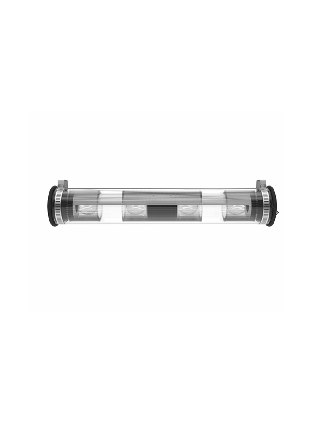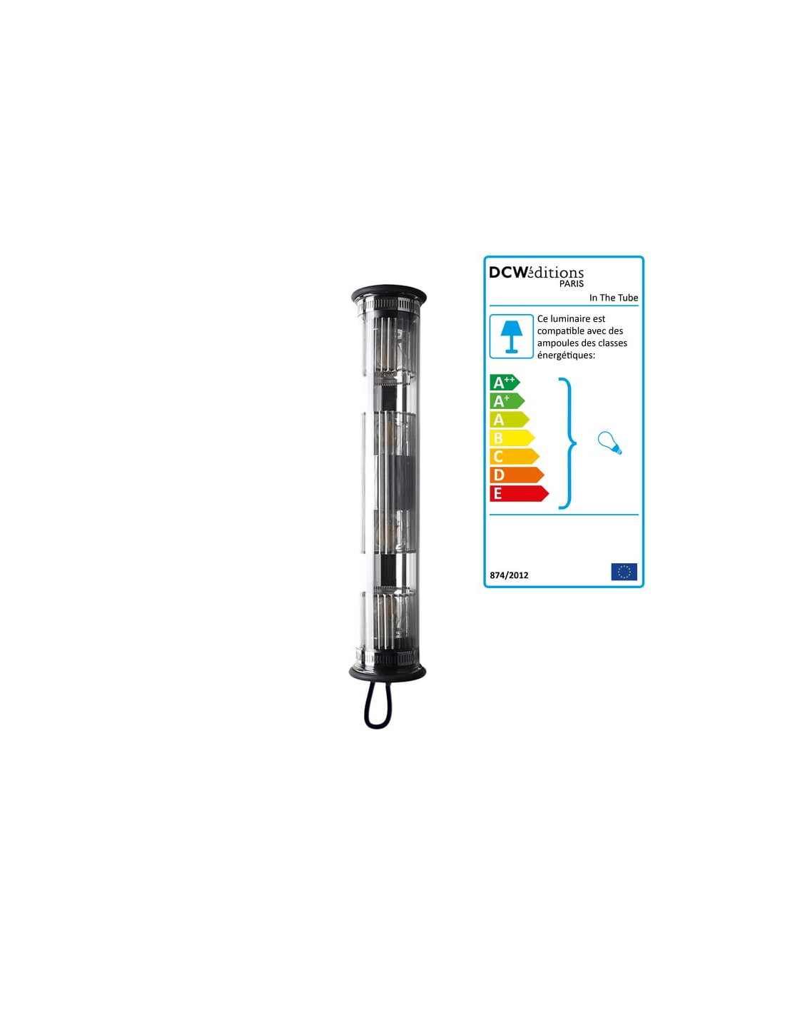 Proposée en verre borosilicate, fermée de bouchons d’aluminium, capée de silicone, avec colliers de fixation en acier inoxydable, sous forme de suspensions, rampes, appliques, « IN THE TUBE » diffuse une lumière filtrée, adoucie, dirigée, orientée par le simple positionnement fixe ou amovible d’une maille-filtre façonnée ou d’un réflecteur, dont le matériau même « donne » la couleur.