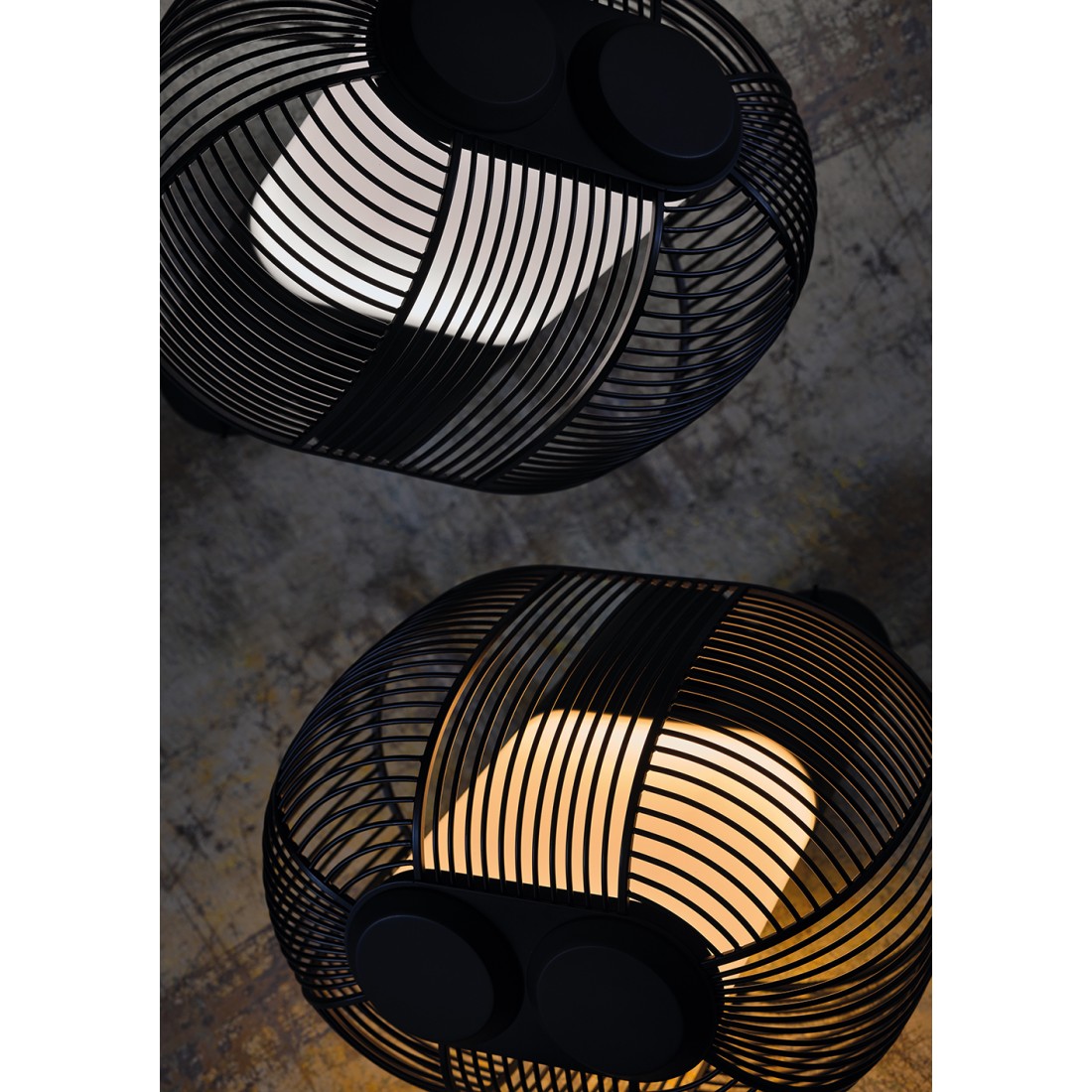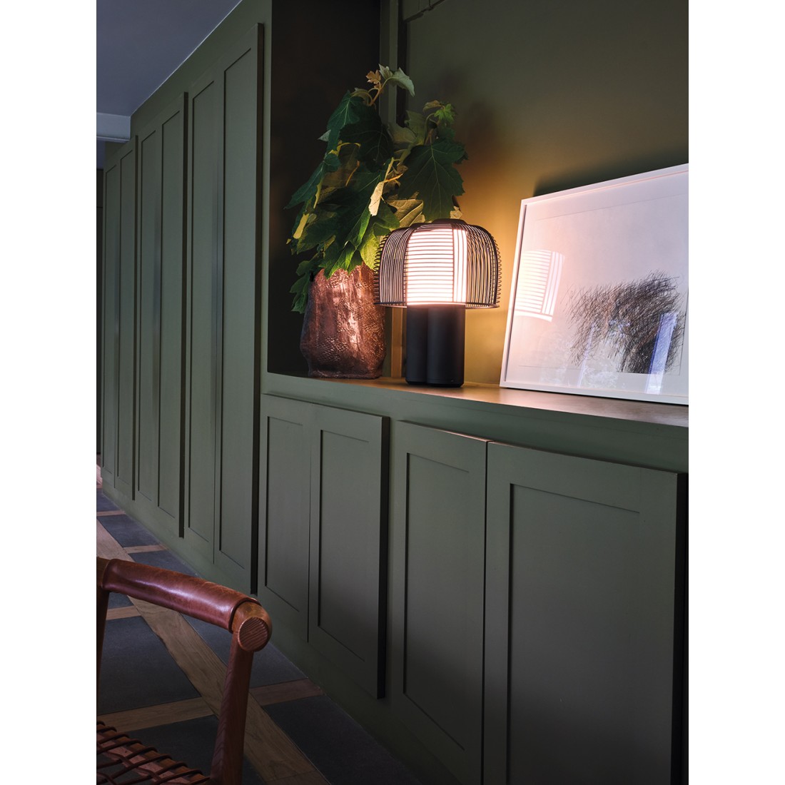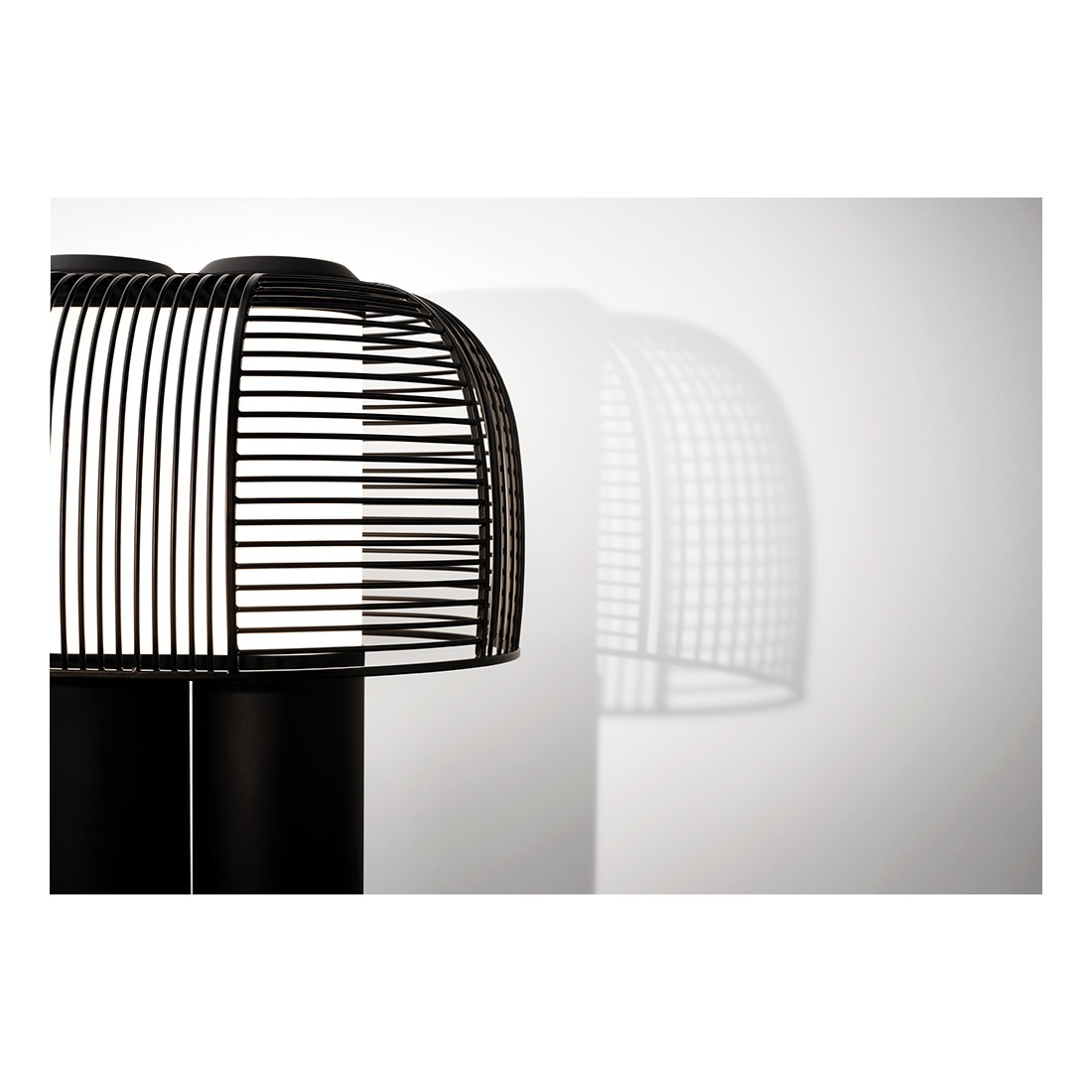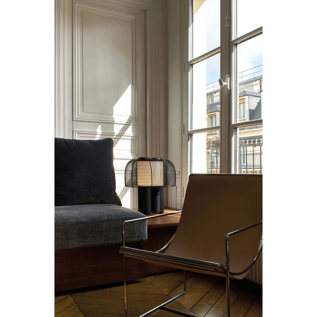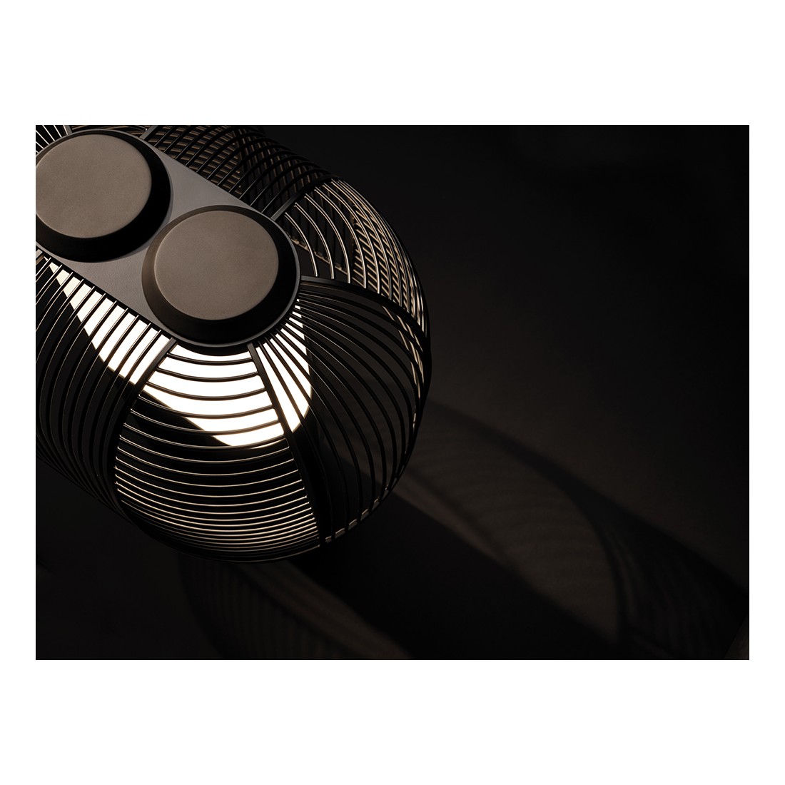 Lampe de table équipée de deux variateurs : l'un contrôle la température de couleur, l'autre contrôle l'intensité lumineuse.