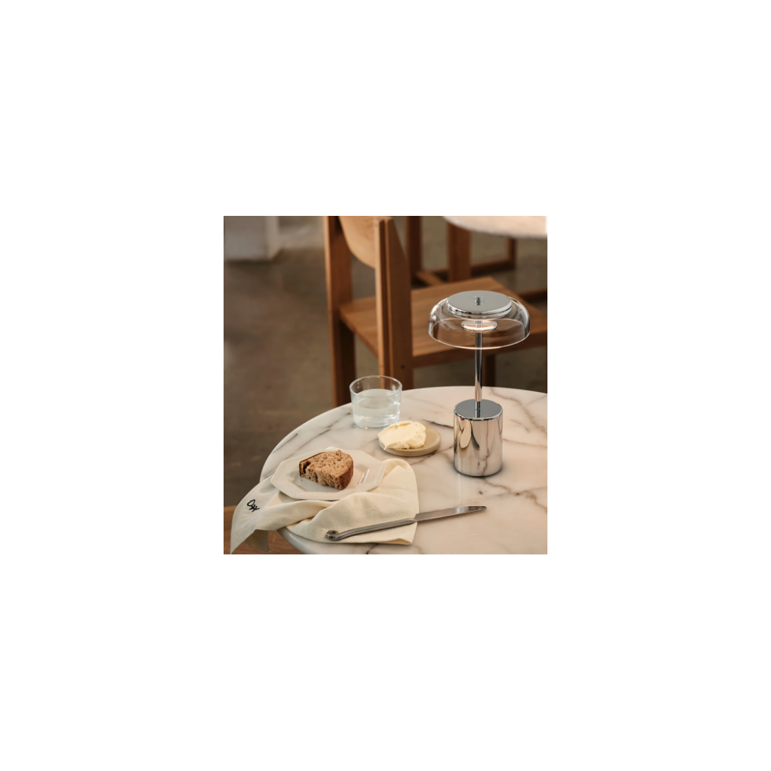 La lampe de table Blossi Mini élargit les possibilités d'éclairage de tous les espaces, intérieurs comme extérieurs, grâce à sa LED portable rechargeable par USB-C.
