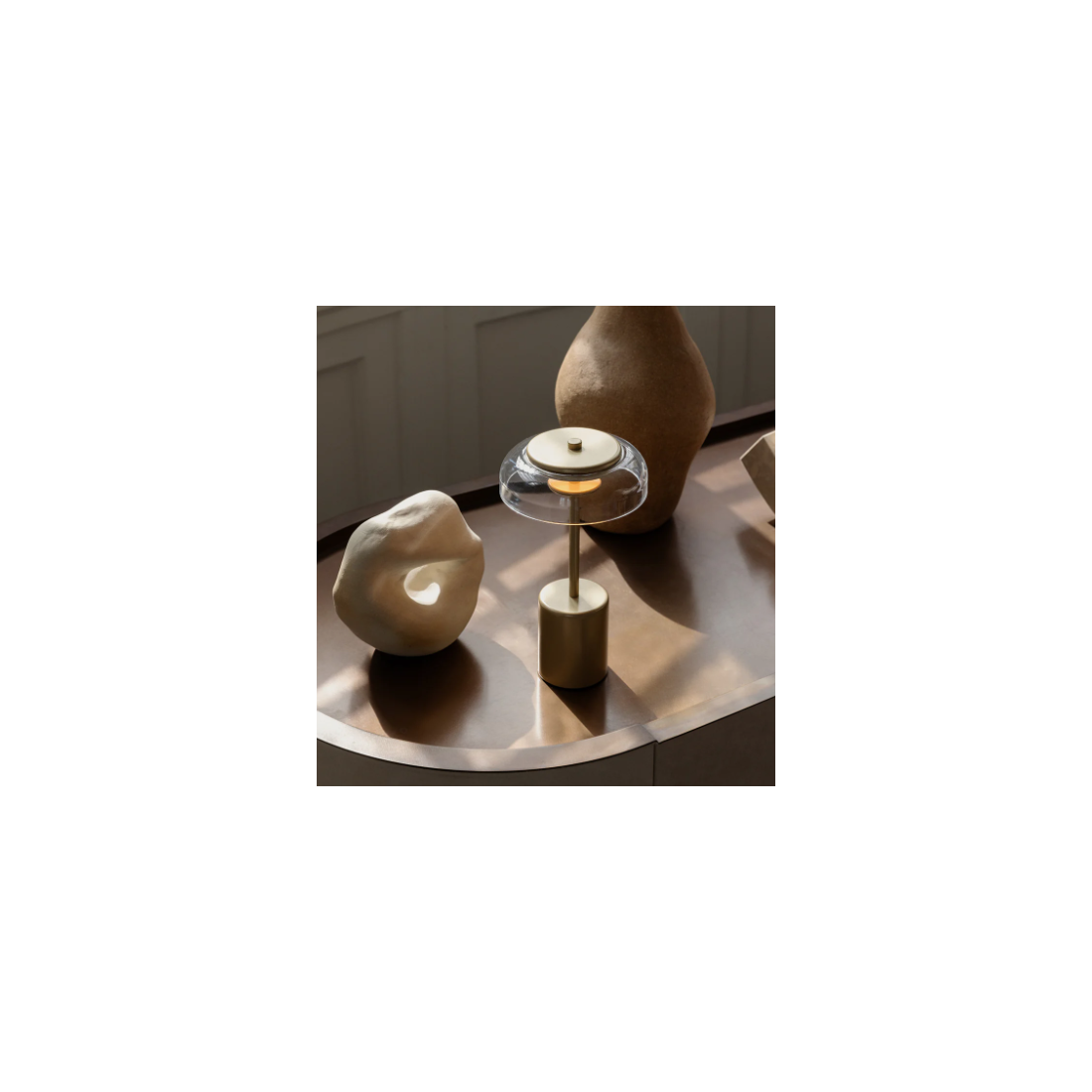 Créez une ambiance chaleureuse et apaisante autour d'une table basse, lors d'un dîner improvisé ou dans un coin douillet où la lumière se reflète sur un disque métallique doré, diffusant une douce lueur.