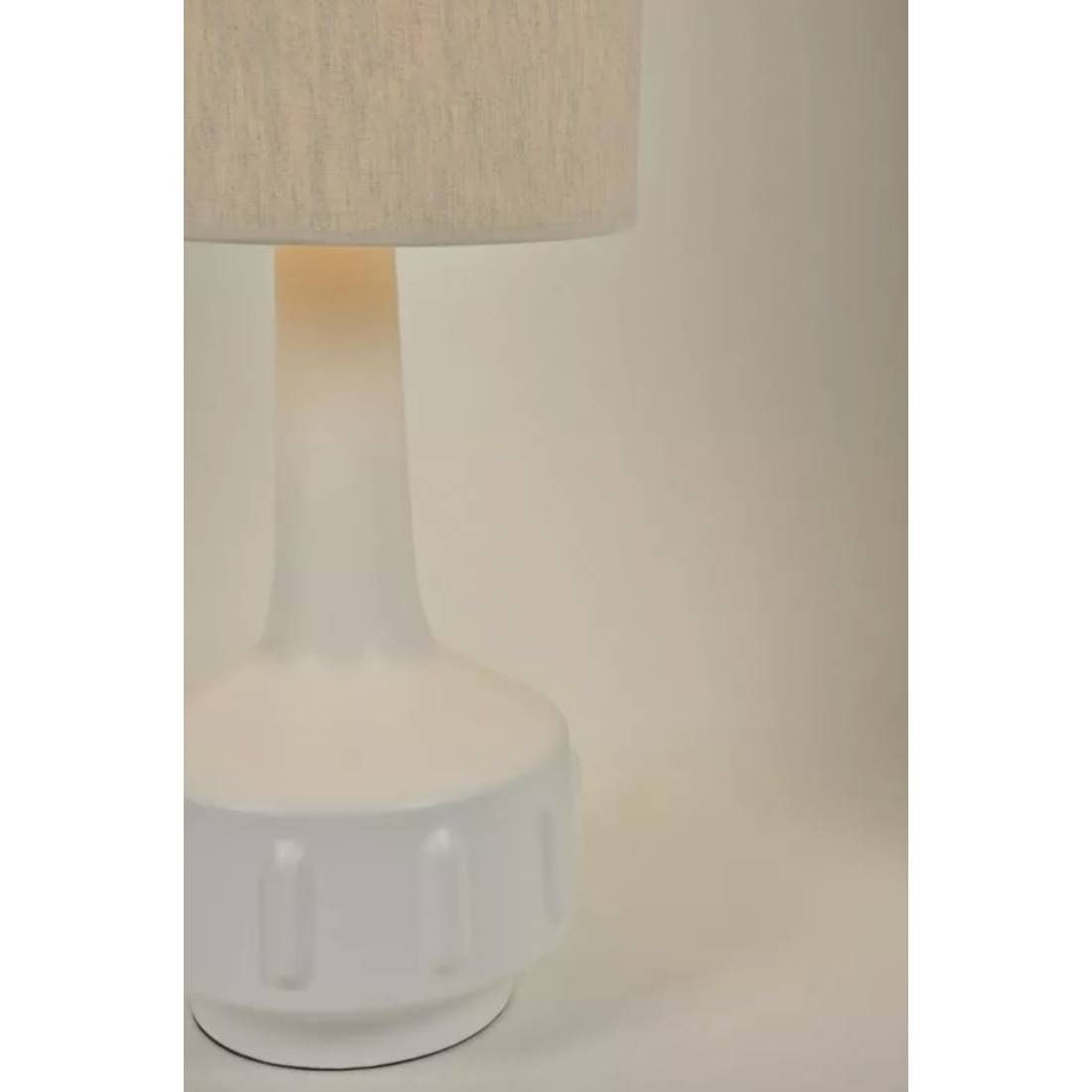 Disponible en version épurée avec abat-jour tout blanc, ou en version ornée d’un galon graphique en coton et bordure contrastée pour un style plus sophistiqué.