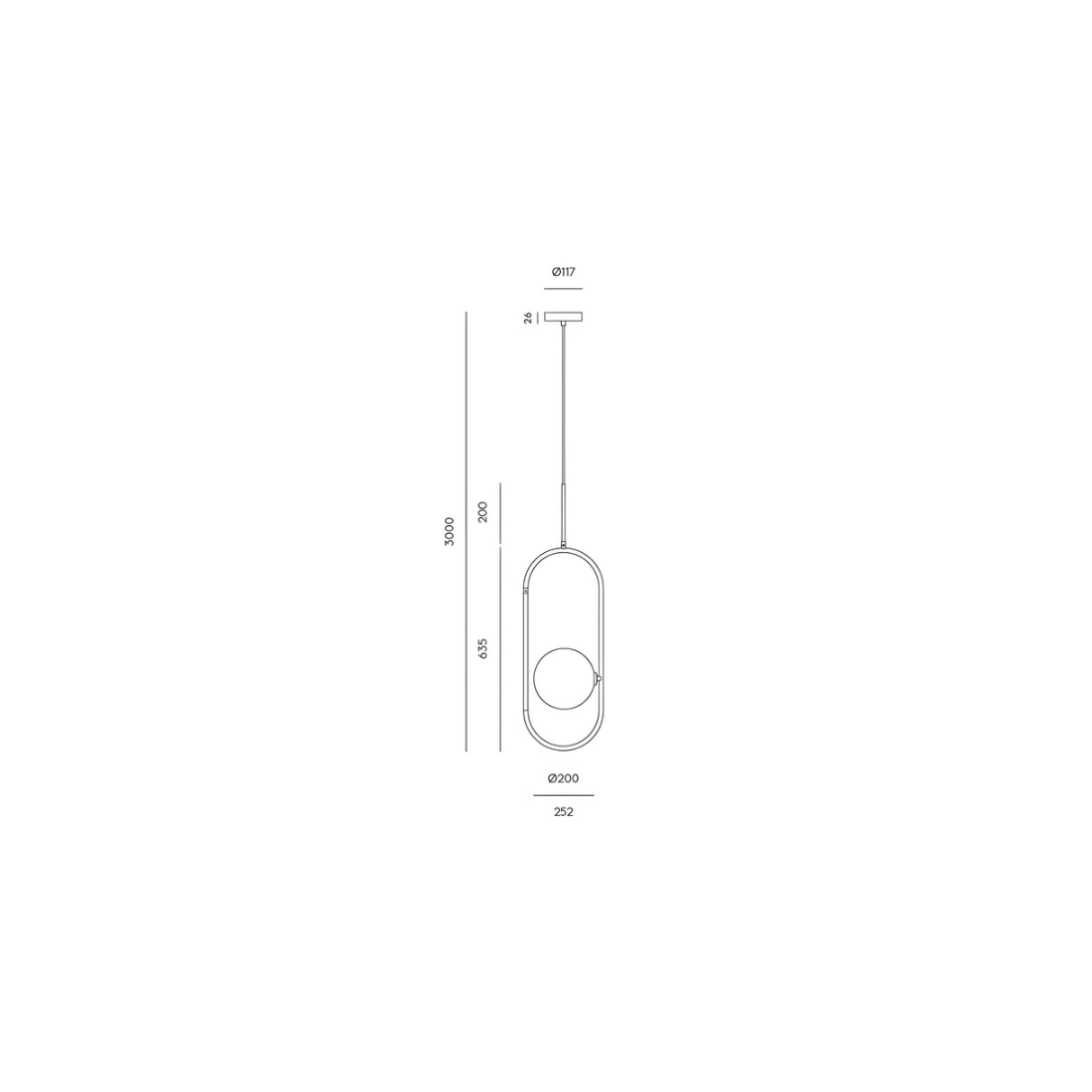 La suspension Abbacus, imaginée en 2018 par Pepe Fornas pour la marque espagnole Aromas del Campo, se distingue par son design sculptural alliant un arceau métallique et un globe en verre soufflé.
