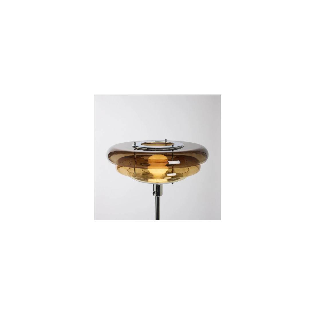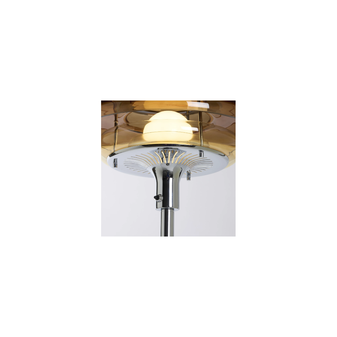 Le verre couleur ambre diffuse une lumière chaude qui crée une atmosphère agréable et plonge la pièce dans une ambiance douce et accueillante.