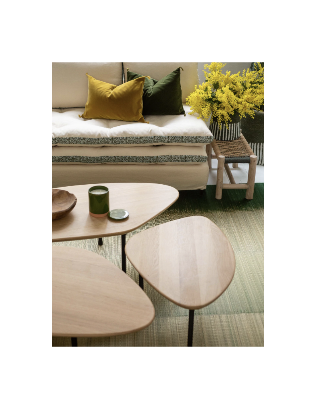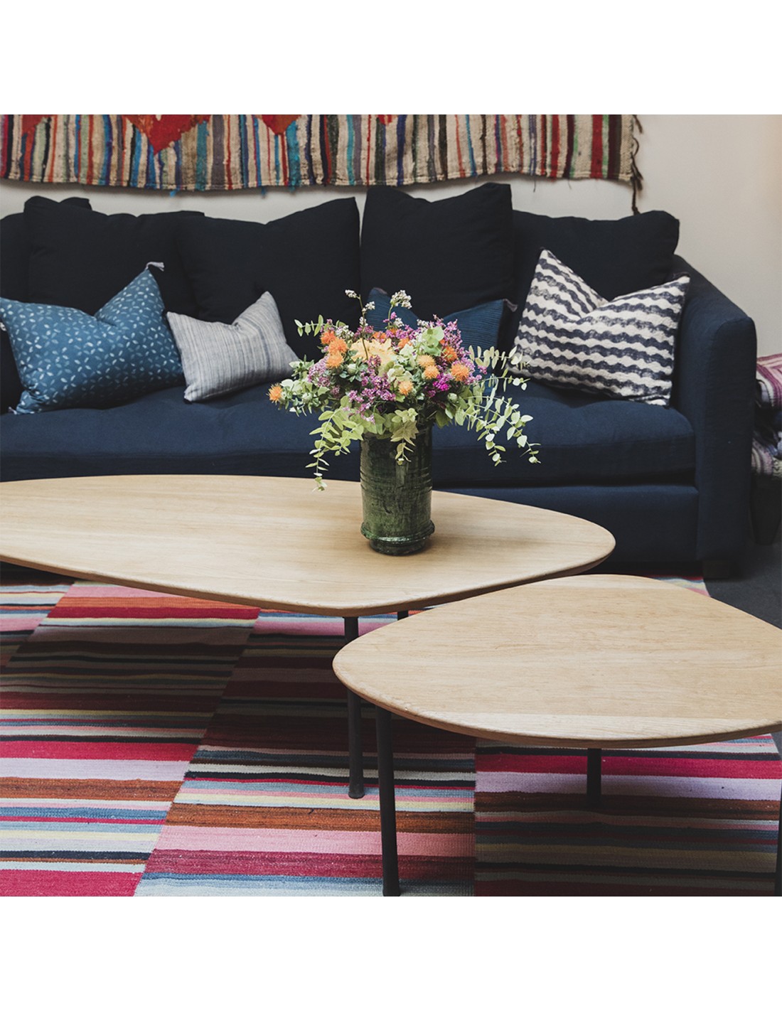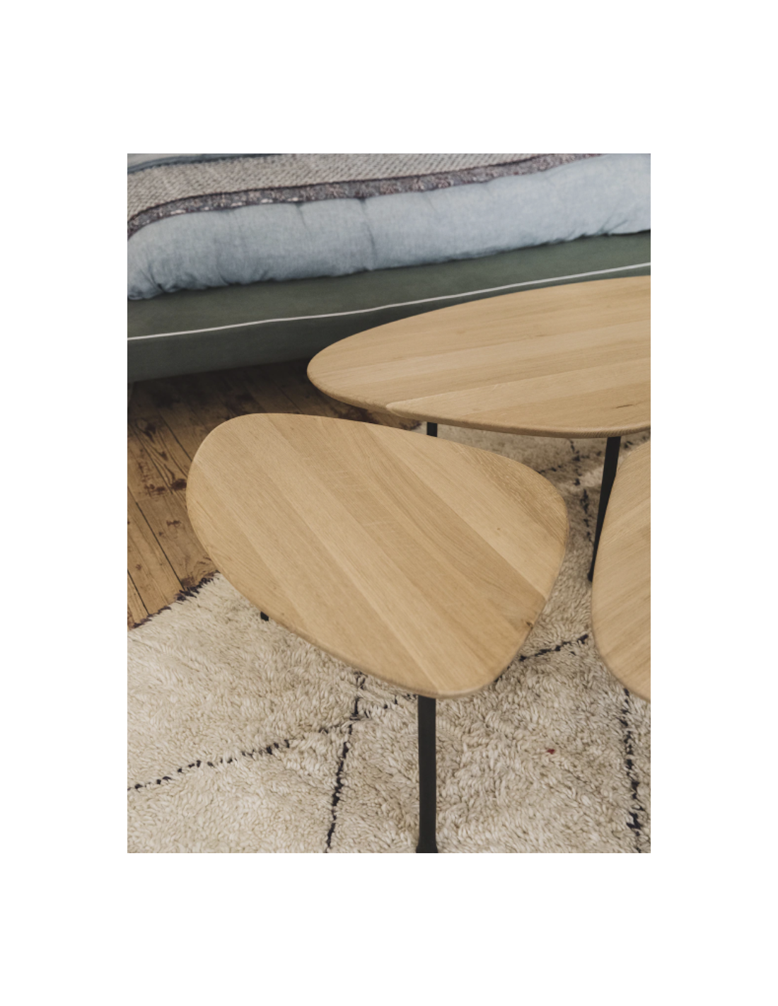 - Plateau en chênePied en métal martelé