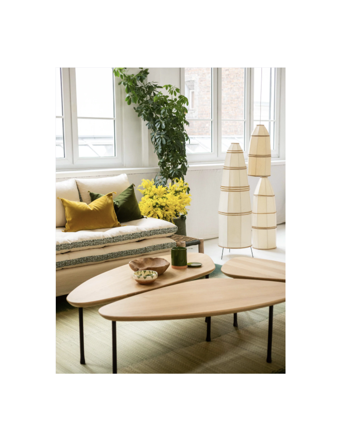 De fabrication entièrement artisanale, le chêne est sélectionné pour sa régularité et la finesse de son veinage, le plateau est ensuite formé en "aile d’avion" ce qui lui donne toute son élégance.