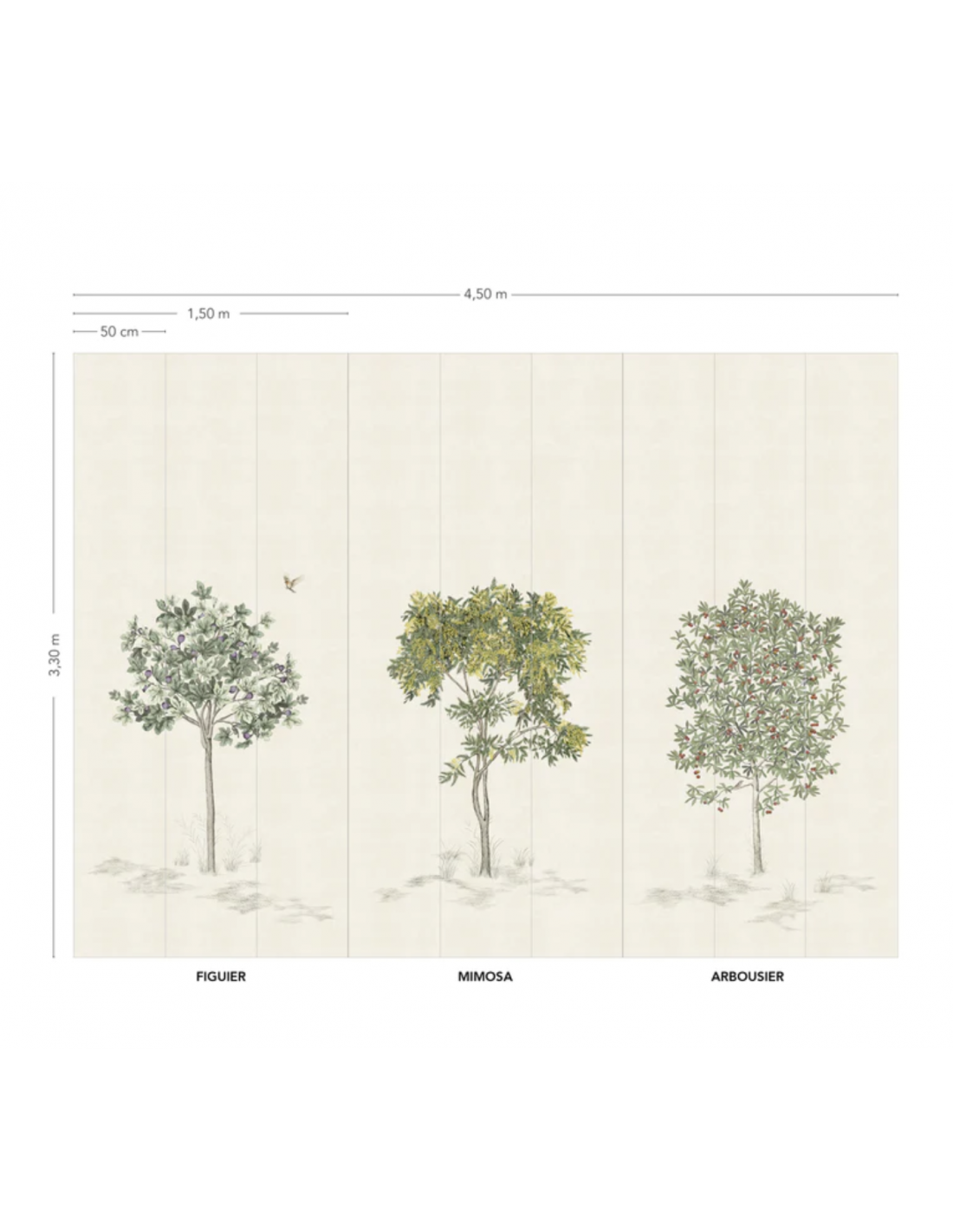 Un véritable sur-mesure ! Vous avez la possibilité de créer votre composition en choisissant un-deux ou trois arbustes; le figuier, le mimosa et l'arbousier. La version panneau vous permet plein de possibilités !