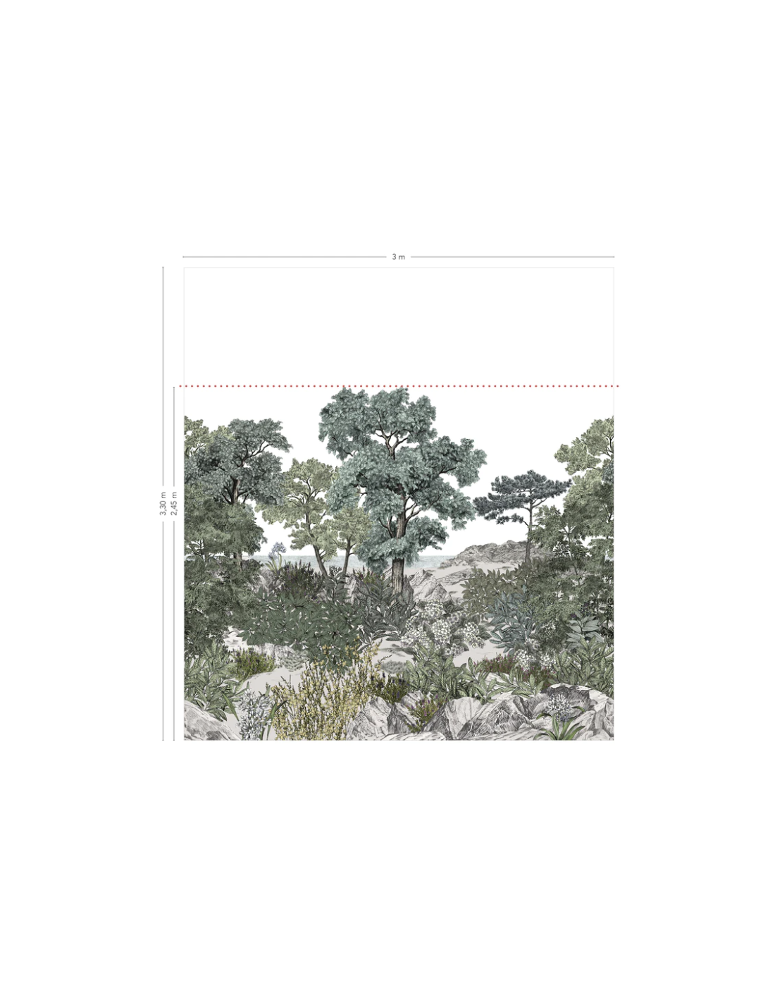 Ce papier peint panoramique est un paysage inspiré de la végétation et la côte de Bretagne.