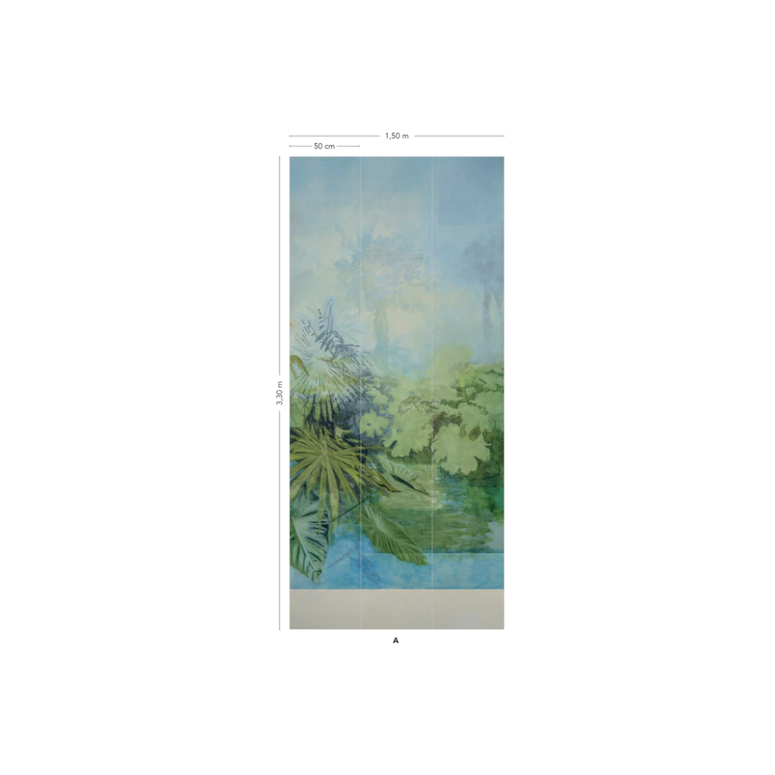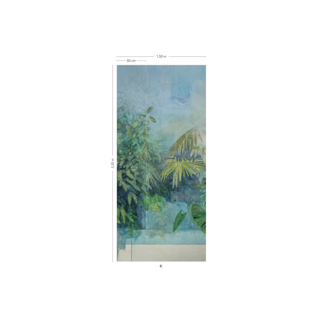 Le motif complet de 4.5 m de large est composé des panneaux A, B et C. Chaque panneau mesure jusqu'à 3.3 m de haut et s'adapte facilement à des murs de 2.4 à 3.3 m de haut.