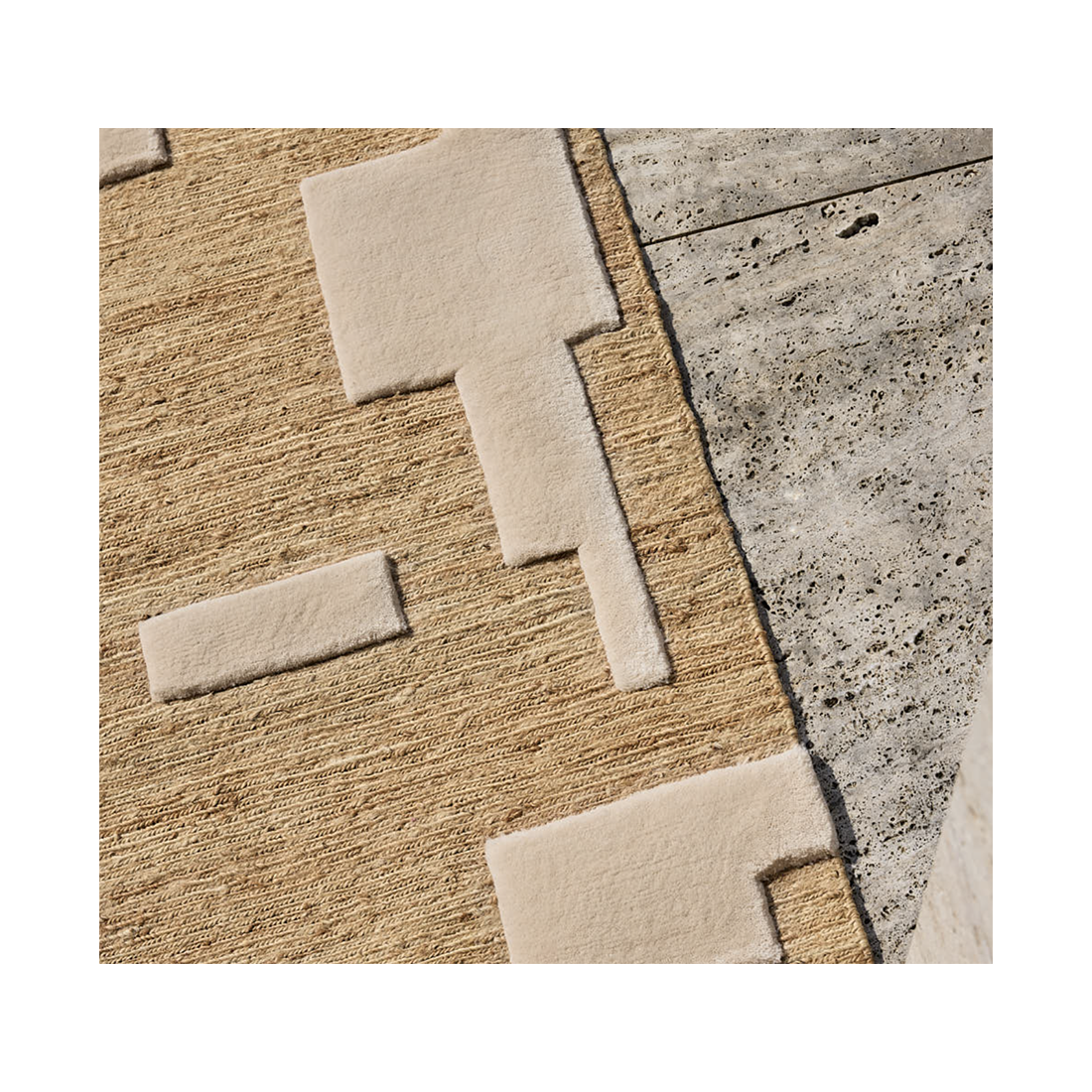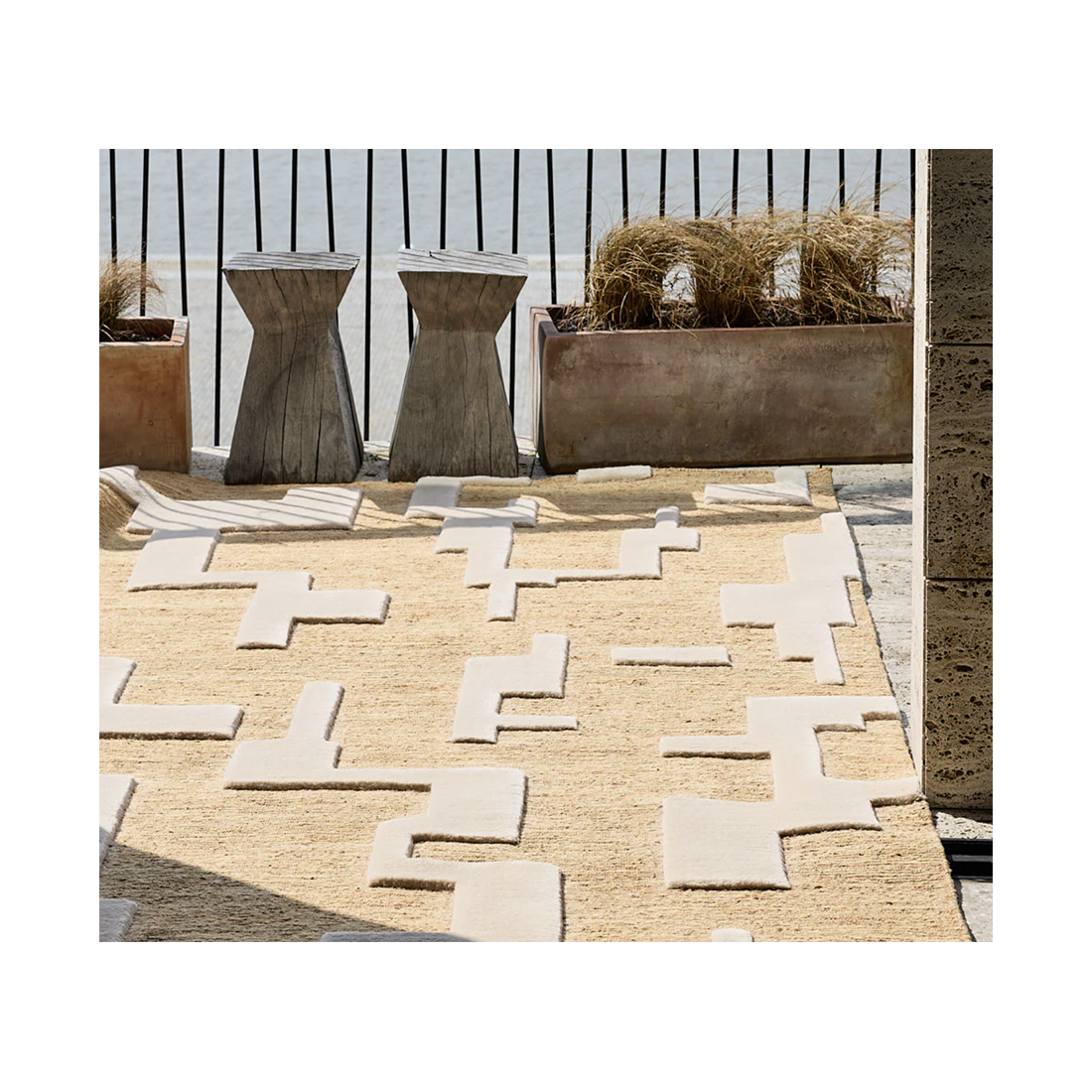 Sur les hauteurs sacrées de l'Acropole, où les dieux murmurent, un tapis s’étend, mêlant chanvre et laine de Nouvelle-Zélande.
